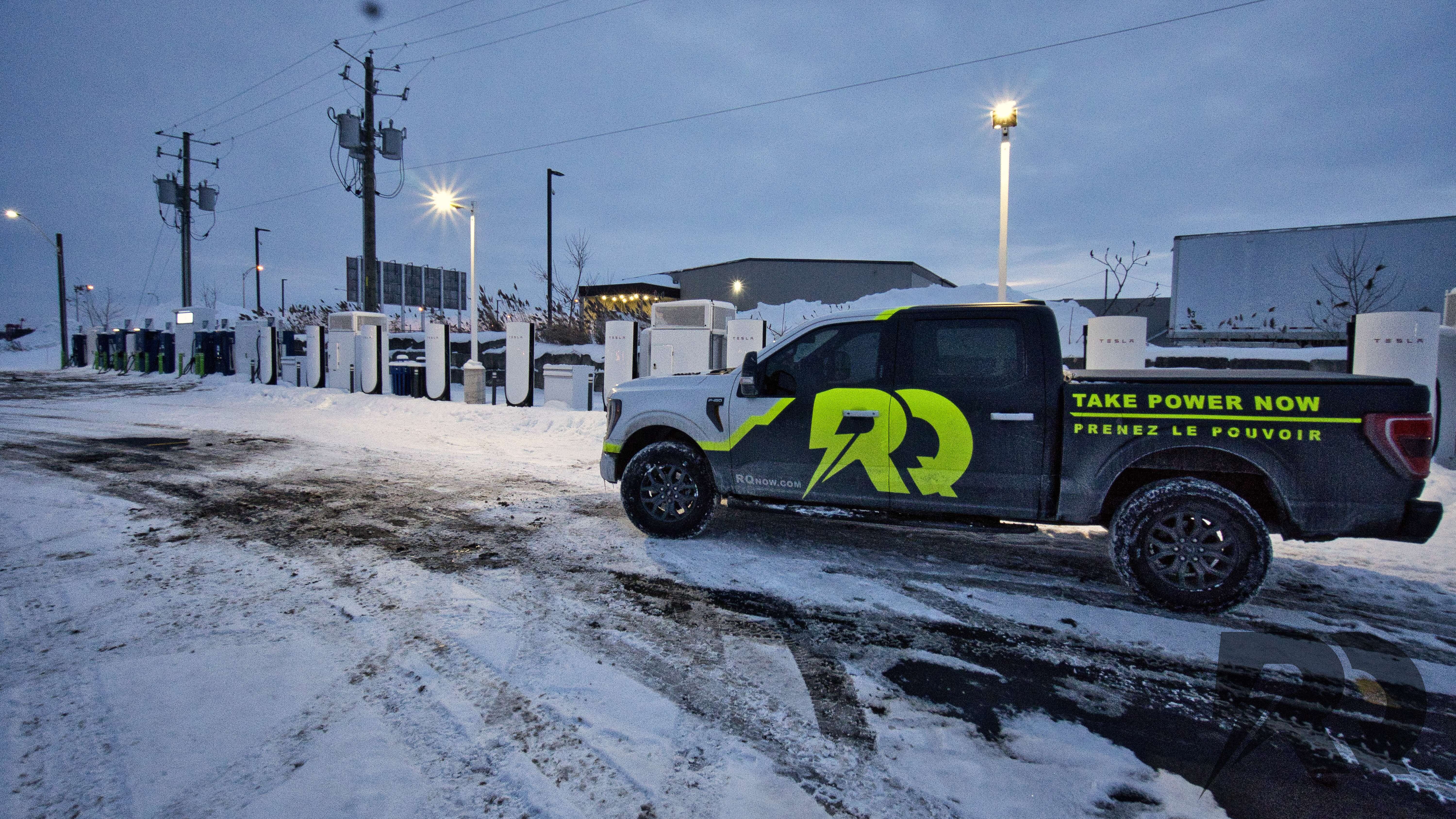 This site features 16 Tesla Superchargers, delivering up to 325 kW per stall. The site has been open to the public since December 2025, with a charging cost of $0.28/kWh, taxes included (GST and QST). It also includes 2 pull-through stalls, designed for vehicles towing trailers.